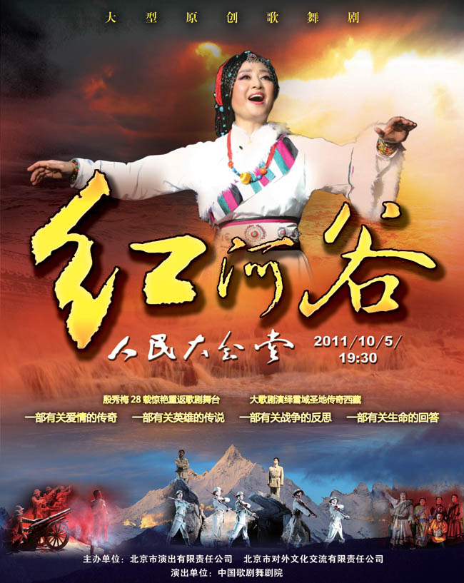 由北京市演出有限責(zé)任公司和中國歌劇舞劇院聯(lián)合推出的大型原創(chuàng)歌劇《紅河谷》以二十世紀(jì)初的西藏為時(shí)空背景,演繹了漢藏兒女生死相依的愛情故事和并肩抗戰(zhàn)抵御英國侵略者的英雄傳奇。兒女情、民族情、愛國情,激烈的戲劇沖突、碰撞的中西方文化、大氣磅礴的音樂制作、細(xì)致精美的舞臺(tái)呈現(xiàn),以及中西方文化的碰撞和民族融合中流露的真情,會(huì)帶給觀眾更直接的心靈沖擊和震撼。